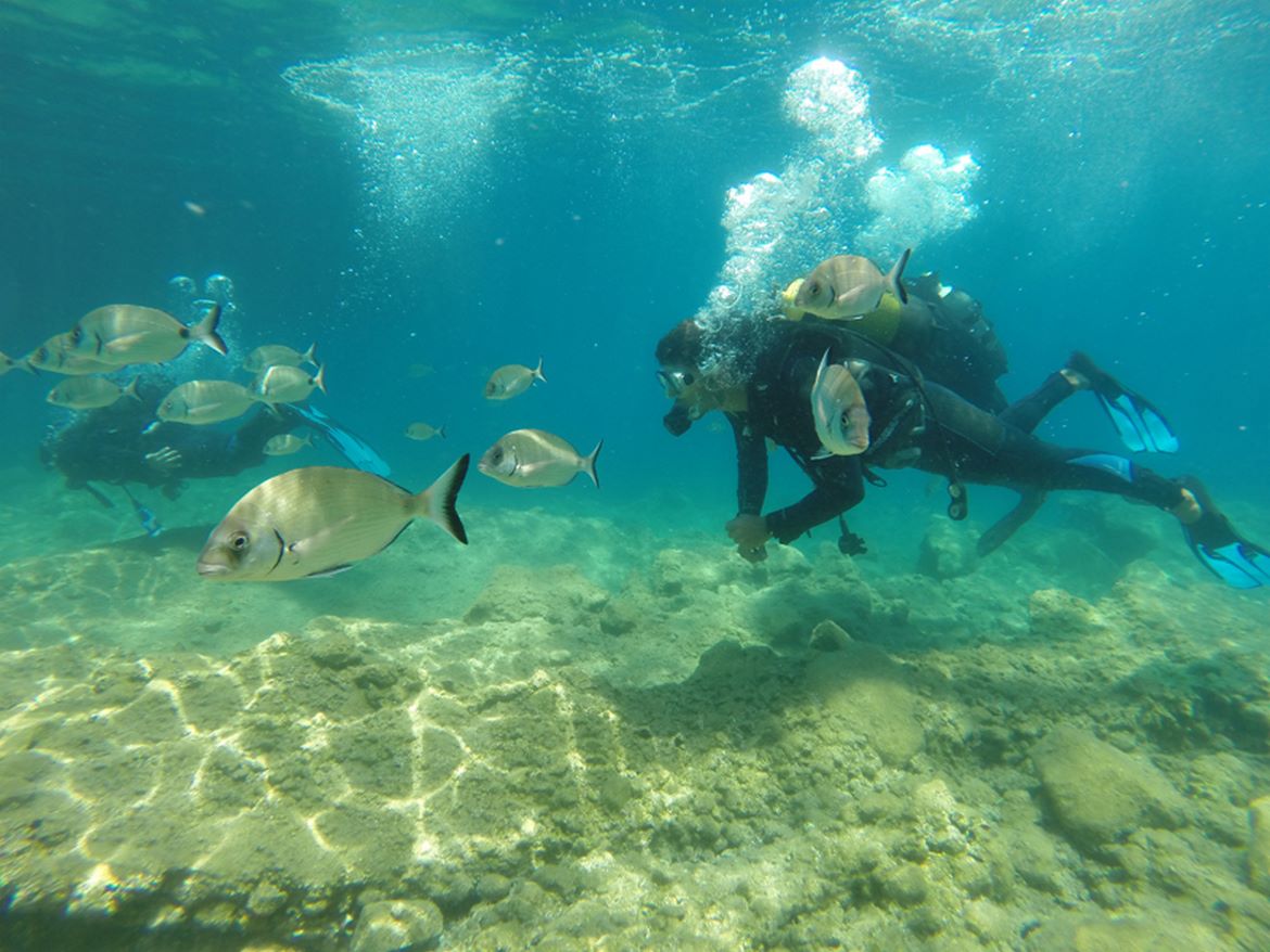 It is a volcanic rock formation at the south of Karaada and 300-400 meters away from Aksona Bay.Volcanic structure makes here desirable to dive. Blue Escape will reach this diving site in 50 minutes.Since current is on the scene we recommend for advanced divers still a nice diving site of Bodrum. The Karaada side of Flat Rock is not good for diving as it is so shallow and covered by sea grass. So you will be diving to southeast and expect to see lobster, moray eel, octopus, grouper, white grouper, dentex, wrasse and barracuda.If you are a lucky diver then you can be surprised by a 3 meters long ray who like to swim with divers.