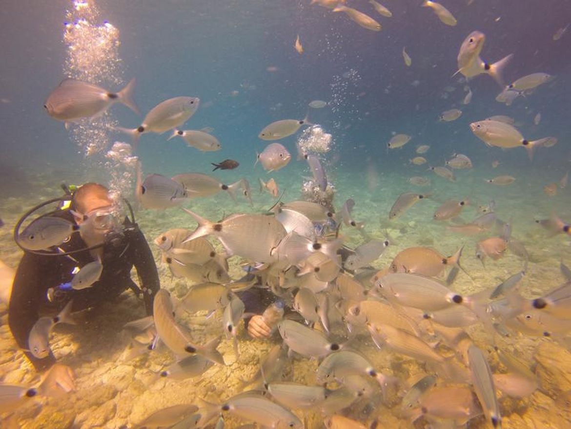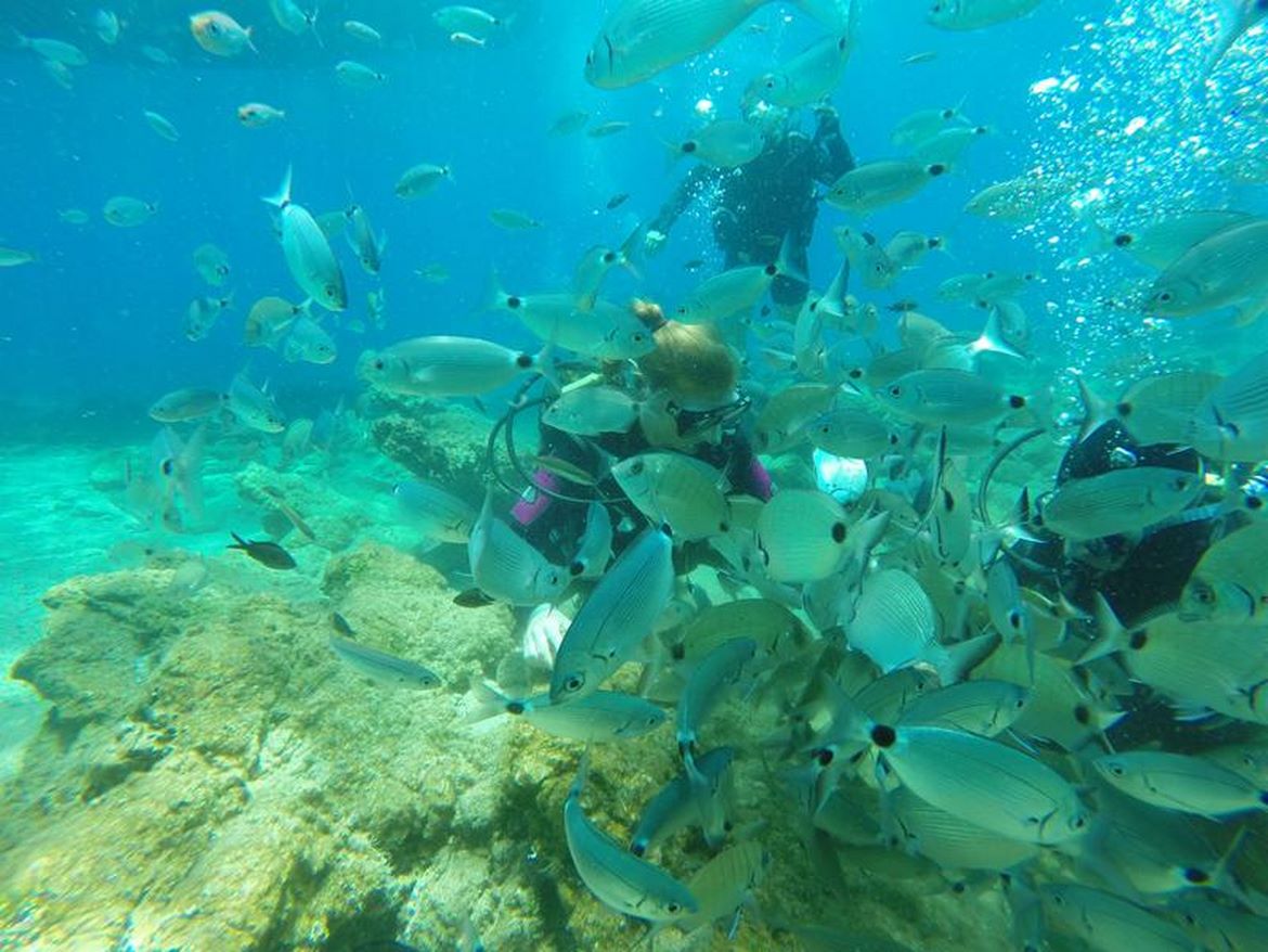 Fridge Bay is located next to Light house, the journey will take 20 minutes with Blue Escape. It offers 2 dive directions for divers. The first route has the similiar topography with lighthouse and convenient for beginners and open waters. The second route is advised for advanced divers with a depth of 18 to 30 meters. Blue Escape dive guide will lead you to the spot which is in the middle of the bay and encircled by sea grass. Rock outcrops hosting different fish species. The expected visitors of the dive spot is schools of baracuda, octopus, dentex,cuttle fish and axe fish. Do not forget to look out for amphora parts spreaded around.